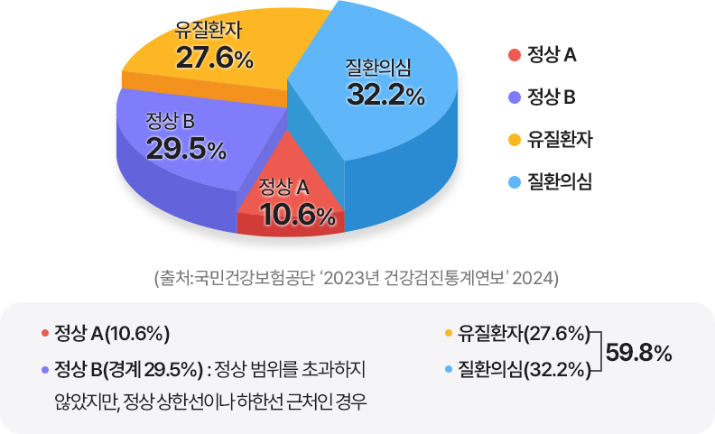 건강검진을 받은 2명 중 1명 '질환이 있거나 질환 의심자'
